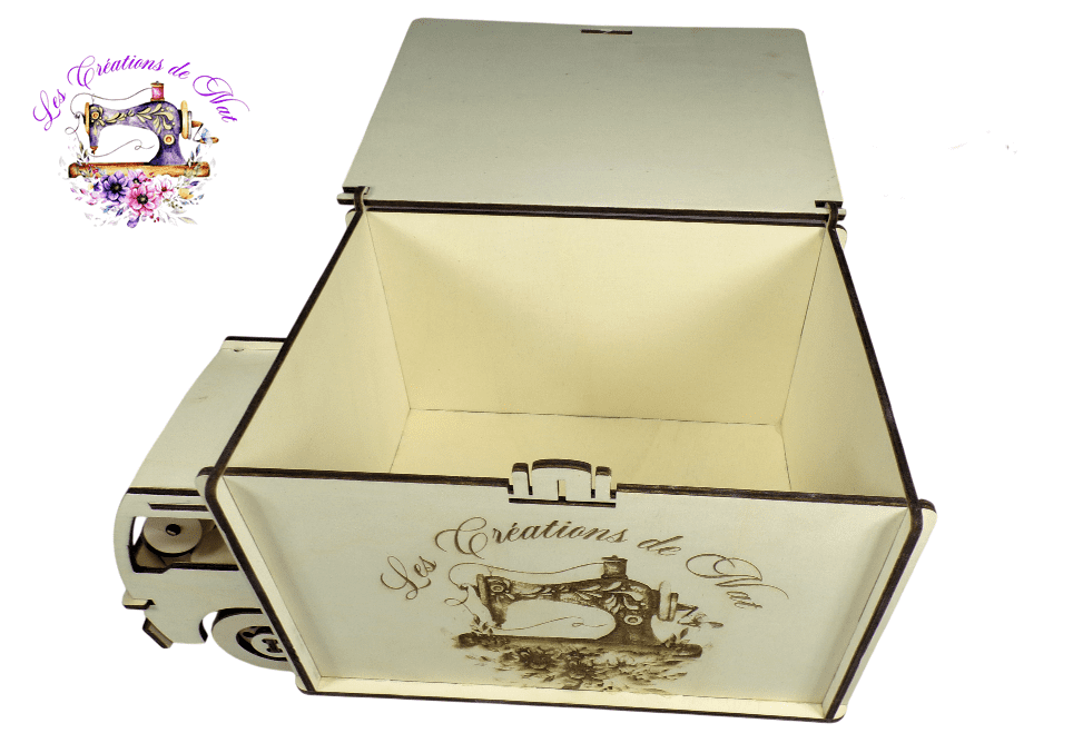 Boite en forme de camion, découpée et gravée au laser, en contreplaqué de Peuplier.