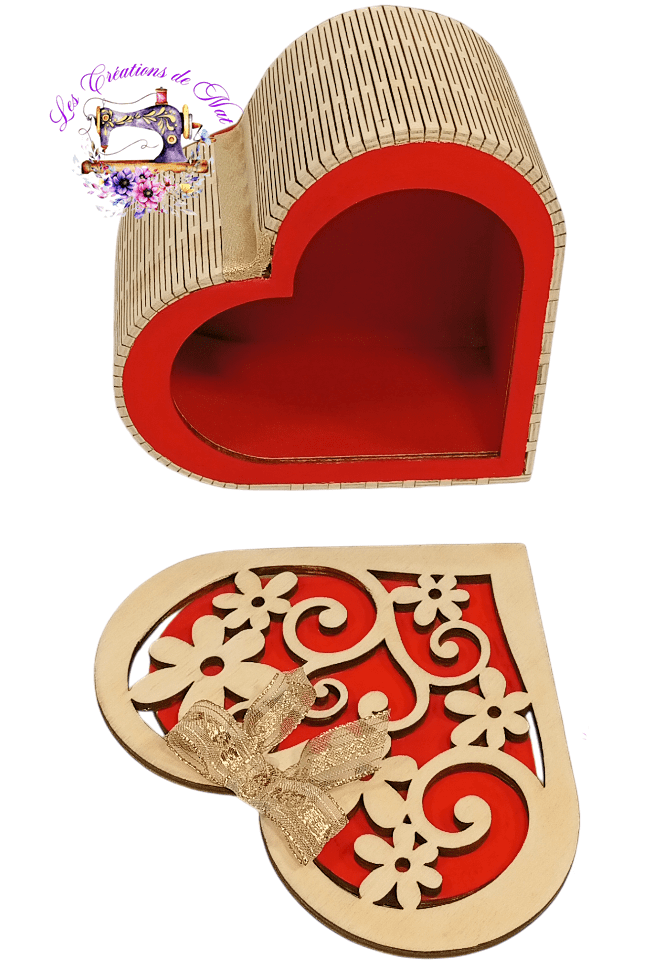 Coffret en forme de coeur, avec bouchon en relief, garniture intérieure en feutrine rouge.