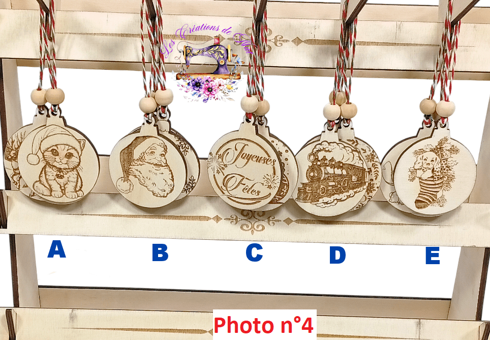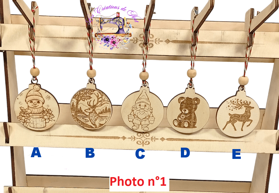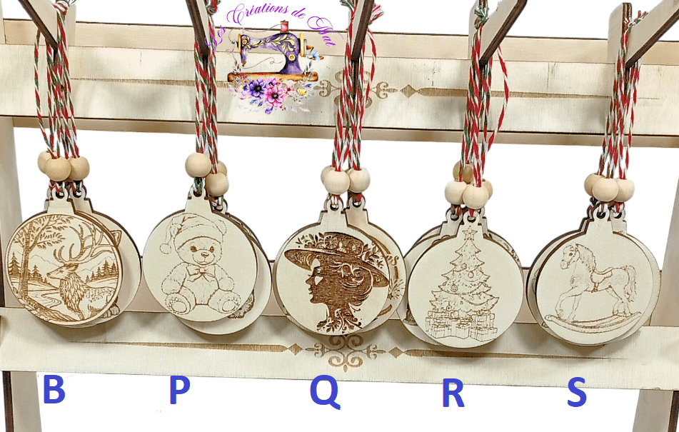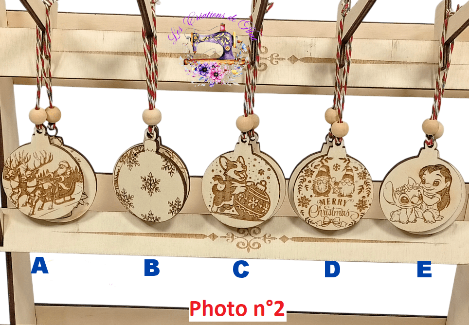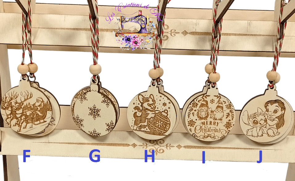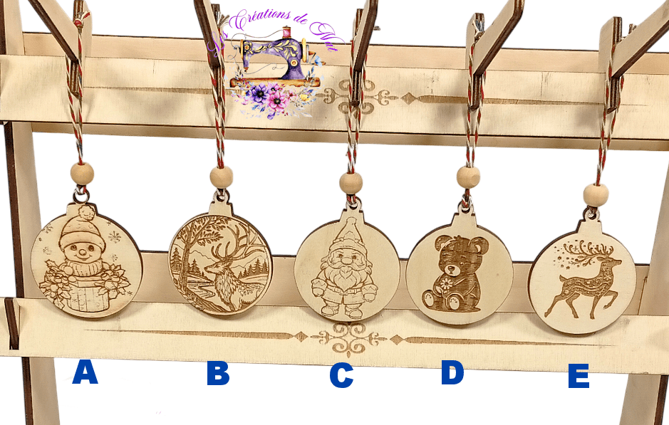 Boule de Noël en Peuplier de 5mm gravé sur une seule face et découpé au laser.