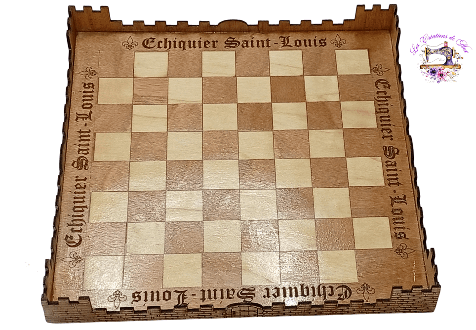 Echiquier bois "Saint Louis" gravé et découpé au laser, vendu sans pions.