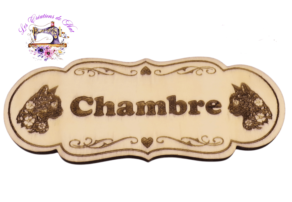 Plaque de porte nominative en contreplaqué de Peuplier, découpée et gravée au laser.