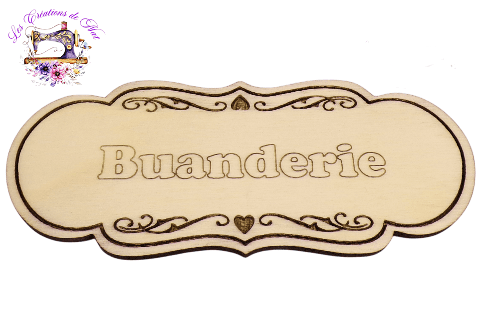 Plaque de porte nominative en contreplaqué de Peuplier, découpée et gravée au laser.