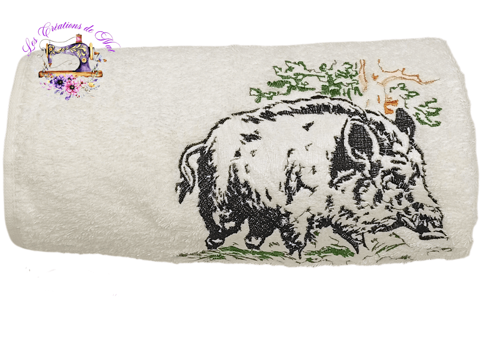 Serviette de toilette brodée blanche en 100% coton, 550gr/m², qualité hôtelière.